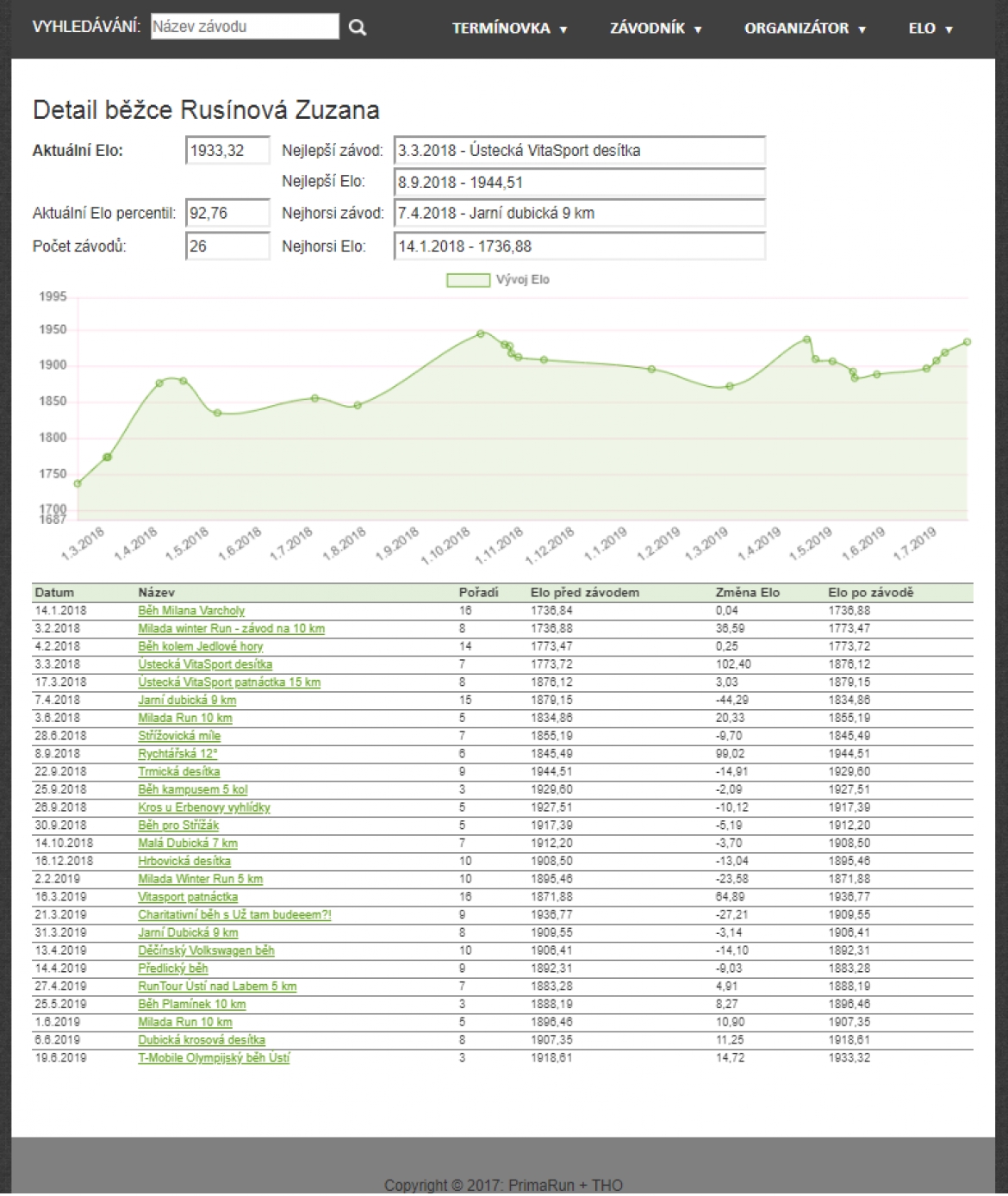 Na stránkách našeho systému PrimaRun (www.primarun.cz) se vpravo nahoře objevila volba Elo. Jde o beta verzi našeho nového systému hodnocení běžců. Budeme rádi, když nám napíšete připomínky a náměty k vylepšení, nejlépe na facebook nebo na mail. Aplikace se bude dále vylepšovat, hlavně designově, testujeme nyní funkčnost.