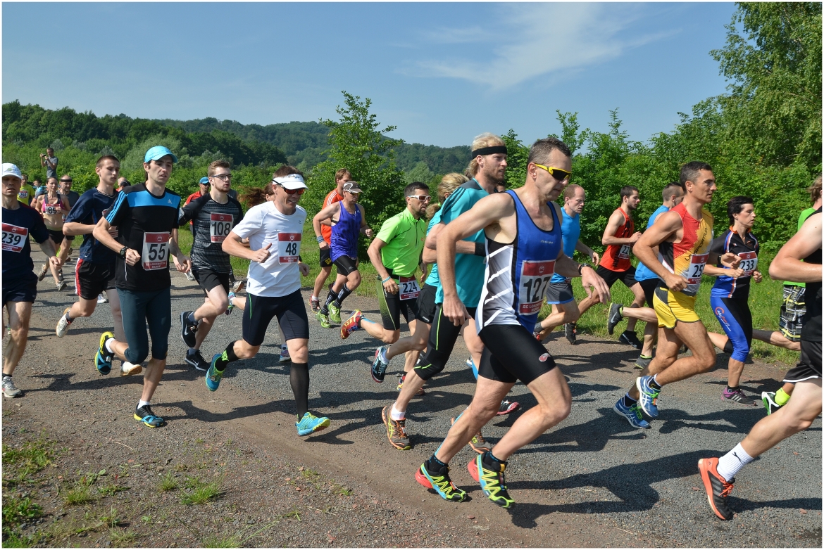 Mezitím se zaplnil prostor startu běžci a ve stimulující vůni opékajících se klobás se většina z nich rozklusávala a rozcvičovala. Viděl jsem Zdeňka Pince, Petra Zudu, Pepu Procházku. V ženách nechyběla Jarmila Sobecká, její velká soupeřka Kateřina Ježková přijela po sobotním závodě povzbuzovat. V deset hodin vyštěkla startovní pistole a skoro 180 běžců (plus pět kol a dva psi) se valilo z mírného kopce k prvnímu rohu jezera Milada. Zde nás usměvavá pořadatelka z Dobrovolnického centra UL navedla dolů ke břehu a začala zdlouhavá cesta po břehu jezera. Klusal jsem pomalu vedle kola své dcery, která si po dětském závodě dala se mnou ještě desítku na kole jako doprovod. Pořád povídala, nejprve to byl dialog, potom jednoslovné odpovědi a nakonec, u oblázkové pláže, kde jsem musel s kolem pomáhat, jsem se omezil už jen na nonverbální komunikaci. Slunce pálilo a těch pár mraků proplouvajících oblohou se mu důsledně vyhýbalo. Slunící se návštěvníci pláží na Miladě měli povyražení, ale moc nefandili, aspoň teda mně ne. Byli jsme v opačném rohu cesty kolem jezera, než byl start. Kdyby tady někdo vzdal, moc mu to nepomůže, stejně by musel do cíle těch pět kilometrů dojít. Ještě trochu oblázků a pak zpět na cestu, kolo zase jede "samo" a já se můžu těšit na občerstvovačku a její vedoucí, loňskou vítězku Zuzku Rusínovou, která už rozhodně nemusí odpovídat na dotazy, cože letos neběhá. Popřál jsem jí zdravíčko a čekal na svůj doprovod, který pil už druhý kelímek vody. Sluníčko bylo ještě výše a vítr zvedal z cest drobný prach, bylo ho potřeba spláchnout. Vzpomněl jsem si, že na startu nám moderátor říkal, že Zuzka bude do cíle volat průběžné pořadí těch nejlepších. No, kdyby ji z cíle zavolali, jak to dopadlo (myslel jsem si), měl bych přehled o kompletních stupních. I jinak mi hlava začala blbnout, ale to se mi stává často a nepřisuzoval jsem to uběhlým 6,5 km bez pokrývky hlavy. Kousek za občerstvovačkou dva pořadatelé mohutně povzbuzovali a to bylo snad ještě lepší než ta voda. Desítka kolem Milady je dost náročná na psychiku, vidíte daleko před sebe a moc to "neodsejpá". Pustili jsme popelářské auto a začali se přibližovat k bodu na břehu, odkud se vybíhá do kopce. Znáte ten pocit, jak Vám jdou nohy, když máte v hlavě nějaké pěkné myšlenky a naopak? Tak nejprve mi trochu zatuhlo, když jsem viděl, že v zákrutu, kde jsem myslel, že už půjdeme nahoru od jezera je jen cesta dál rovně. Nepřidávalo mi taky, že se kostel v Roudníkách vůbec nepřibližoval. No a dodělala mě dcera, která se na mě starostlivě dívala a vyjádřila obavu, zda těch deset kol uběhnu... Při té představě na mě padla deka a než jsem vysvětlil, že těch deset je kilometrů a ne kol, bylo tu to stoupání. Nahoru jsem šel a tvářil se, že pomáhám s kolem. Pak rovně, ještě trochu kopeček a cíl. Hlava byla zahřátá a moc nepracovala, takže jsem pár lidí oslovil jiným jménem, což jsem později, když jsem byl již při smyslech, korigoval.